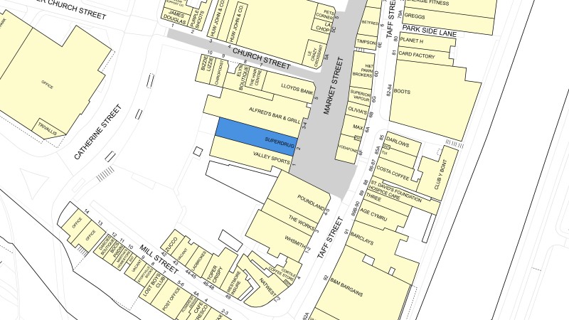 Pontypridd Town Centre is located approximately 12 miles north of Cardiff and 21 miles north of Newport. The town has benefited from excellent investment over recent years with the Transport for Wales Building bringing substantial employment to the area. The property is located in a good position in Pontypridd Town Centre on the pedestrianised Market Street, with nearby occupiers including Lloyds Bank, Boots, Costa Coffee, Poundland and Alfred's Bar and Grill.
