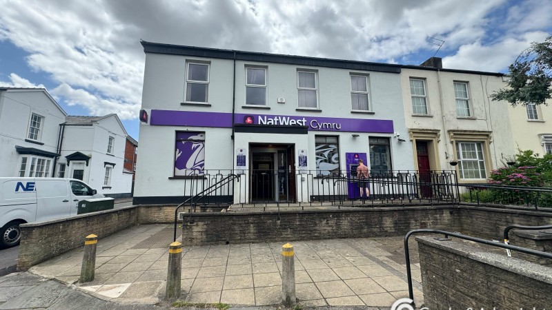 The property is an end of terrace building, with the main entrance accessed via a steps and ramp, leading to a small vestibule to the middle of the building, opening into the main banking hall. The building has been extended to the rear on the ground floor, to create additional back office space and WCs. The first floor is currently accessed internally, this area is utilised for staff, office rooms and kitchen area. At the rear of the property there is a secured car park with parking for 8 cars.