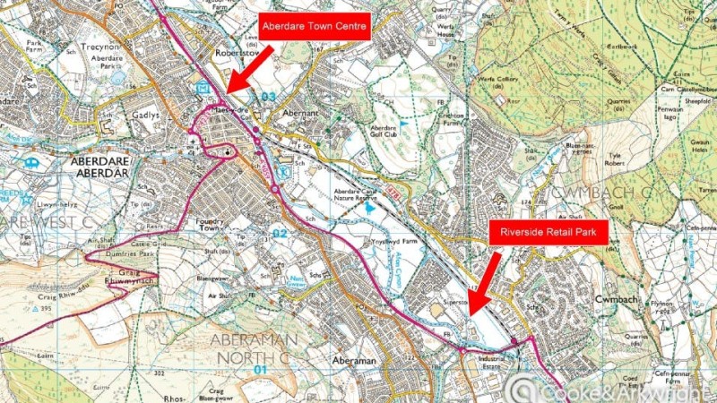 The Riverside Retail Park is located approximately 1.5 miles south of Aberdare town centre. Access is provided via the A4059, with good road links to the A470 approx 6 miles to the south and the A465 approx 5 miles to the north. Asda supermarket is adjacent, with other occupiers in the scheme being a mix of A1 and A3 uses. The retail park serves the large catchment of the surrounding Cynon Valley area.