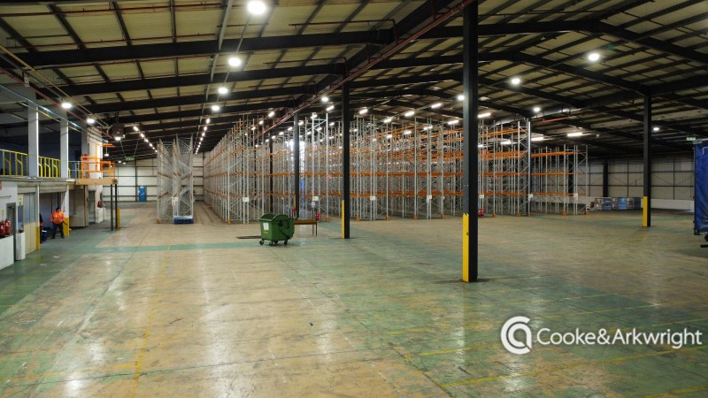 The warehouse is portal frame structure, a mix of block work and profiled steel cladding to the walls, and profiled steel cladding and roof lights. The warehouse has a clean access of 5.6m rising to an apex of 9.5m. The total site extends to c.16.16 acres and is accessed directly from the main estate road. Access is provided by 7 level roller shutter doors opening onto the yard, 2 of these doors fall beneath a canopy at the front of the unit. The office specification comprises suspended ceilings and recessed lighting, decorated plaster walls, carpet floor coverings and wall mounted power.
