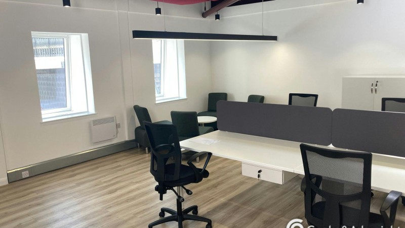 The recently refurbished specification includes; - Fully furnished - Exposed ceilings and services - Electric heating - Kitchen facilities with white goods - In floor/perimeter trunking - LED lighting - Double glazed windows - Male and female WCs